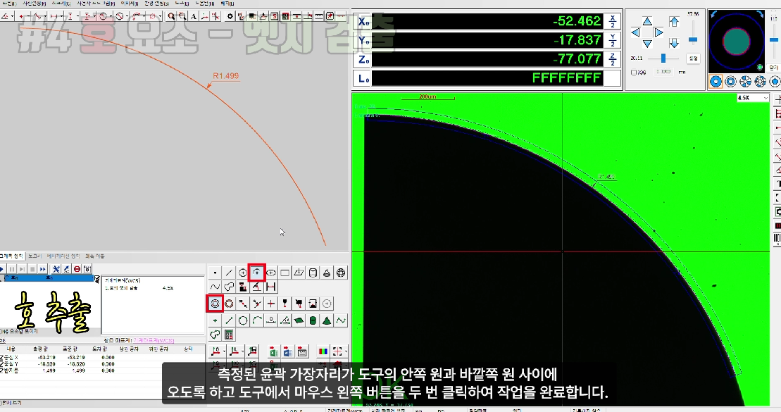 | ③ "윤곽"방식으로 호 추출 | 1단계: " 호 " 요소 버튼과 "윤곽" 방법 버튼을 클릭합니다. 2단계: 파인드 엣지 툴에서 마우스 왼쪽 버튼을 두 번 클릭하여 작업을 완료합니다. |